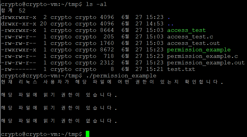 예제 - 읽기/쓰기/실행 권한 확인