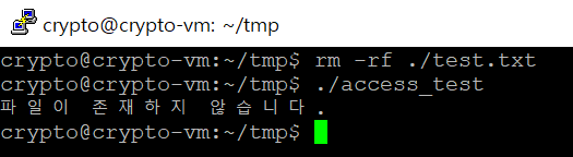 자 이제 실제 access API를 통해 내가 특정 경로의 파일에 읽기/쓰기/실행 권한이 있는지와 파일이 존재하는지 확인해보겠습니다.